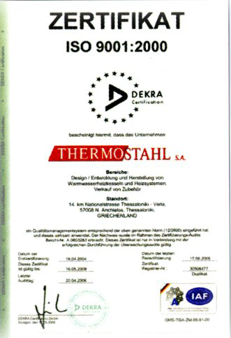 Η εταιρία μας διαθέτει Διεθνές Πιστοποιητικό διασφάλισης ποιότητας.
